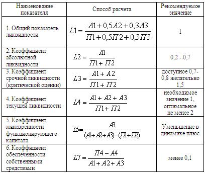 10). Показатели ликвидности их формулы, что показывают и их нормативное значение А1 – наиболее ликвидные активы – денежные средства предприятия и краткосрочные финансовые вложения. А1 = с.250 + с.260. А2 – быстро реализуемые активы – дебиторская задолженность и прочие активы. А2 = с.230 + с.240 + с.270. А3 – медленно реализуемые активы – запасы, а также статьи из раздела I актива баланса «Долгосрочные финансовые вложения». А3 = с.210 +с.220+с.140. А4 – труднореализуемые активы – итог раздела I актива баланса, за исключением статей этого раздела, включенных в предыдущую группу. А4 = с.190 – с.140. Пассивы баланса группируются по степени срочности их оплаты: П1 – наиболее срочные обязательства – кредиторская задолженность, прочие пассивы, а также ссуды, не погашенные в срок. П1 = с.620. П2 – краткосрочные пассивы – краткосрочные кредиты и заемные средства. П2 = с.610 + с.660. П3 – долгосрочные пассивы – долгосрочные кредиты и заемные средства. П3 = с.590. П4 – постоянные пассивы – собственный капитал, находящийся постоянно в распоряжении предприятия. П4 = с.490 + с.630 + с.640 + с.650.