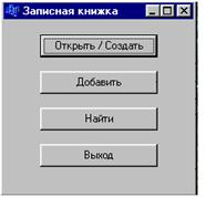 Рисунок 17 - Внешний вид главного окна приложения При нажатии кнопок приложение должно переходить в режимы добавления записей и поиска телефонов (см. рисунок 18)