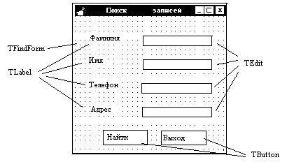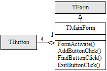 Рисунок 22 - Диаграмма классов для TMainForm 2. Проектирование вспомогательных форм Проектирование вспомогательных форм выполняем аналогично. Так проектирование формы Поиск записей показано на рисунках 23–25.
