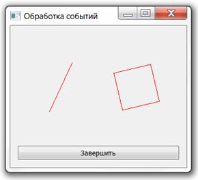2.5 Документирование объектных разработок на языке С++ В качестве примера рассмотрим программу создания движущихся изображений Пример 9. В качестве примера рассмотрим программу создания движущихся изображений. Пусть на экране в окне программы вращаются две фигуры: Линия и Квадрат (см. рисунок 28). Единственная кнопка должна иметь название Завершить и соответственно должна закрывать окно и завершать приложение.