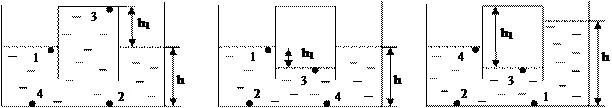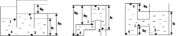 2.1 Для приведенных на рисунке сосудов определите гидростатическое давление в указанных точках (с учетом давления атмосферы). Все указанные на рисунке величины, атмосферное давление и плотность жидкости считать известными.