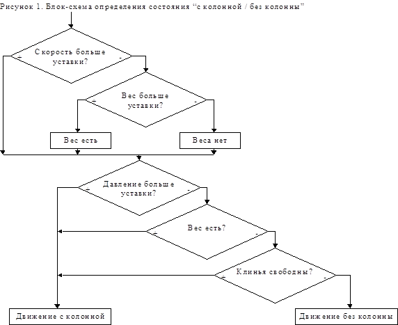 Принцип работы контроллера основан на преобразовании угла поворота барабана буровой лебедки в пропорциональное количество импульсов с последующим пересчетом их в линейное перемещение талевого блока (бурильной трубы, квадрата и т.п.). Датчик углового перемещения вала лебедки имеет двухфазный выходной сигнал, сформированный таким образом, чтобы фазовый сдвиг между импульсами составлял около 90 градусов, что позволяет определить направление вращения вала лебедки. При этом одна из фаз используется непосредственно для счета импульсов, другая – для определения направления перемещения. Контроллер преобразует две последовательности импульсов в счетные импульсы и фиксирует направление вращения барабана. Количество счетных импульсов на полный оборот барабана равно удвоенному числу зубьев гребенки для оптического датчика и утроенному числу магнитов – для магнитного. Контроллер подсчитывает количество импульсов с учетом направления вращения барабана лебедки, а затем преобразует число импульсов в величину линейного перемещения талевого блока. Алгоритм расчета учитывает разницу длин окружностей отдельных слоев намотки каната. Для минимизации ошибки определения перемещения коэффициент пропорциональности зависит от количества слоев каната, оставшихся на лебедке. Для определения номера текущего слоя глубиномеру требуется сообщить раскладку каната (количество витков на нижнем слое), а также текущий номер слоя и количество витков каната, оставшихся на слое. Для определения положения талевого блока также требуется ввести перемещение талевого блока на один импульс датчика по слою, являющемуся базовым (цена импульса), и приращение цены импульса на один слой. В состав микроконтроллера входит трехканальное АЦП, предназначенное для преобразования аналоговых сигналов от датчиков веса, давления и положения клиньев в цифровой код. Данные о наличии или отсутствии давления в манифольде глубиномер может получать от системы сбора информации более высокого уровня. Наличие данных о давлении в манифольде, весе на крюке и положении клиньев позволяет распознавать ситуации: · движение свободного талевого блока или талевого блока с буровой трубой; · движение талевого блока вместе с буровой колонной. Это дает возможность рассчитать дополнительные параметры: · глубину забоя скважины; · расстояние от забоя скважины до бурового инструмента; · механическую скорость бурения. Текущее положение талевого блока определяется глубиномером как сумма начального значения и приращений (с учетом направления) на каждый импульс датчика. Положение инструмента над забоем определяется суммированием приращений с учетом направления изменения положения талевого блока при движении его с колонной. В момент нахождения инструмента на забое параметр “над забоем” равен нулю, при подъеме - увеличивается. Глубина забоя определяется максимальным значением суммирования начального значения и изменения положения талевого блока при движении его с колонной вниз. Параметр “глубина забоя” увеличивается при движении талевого блока с колонной вниз при значении “над забоем”, равным нулю. Алгоритм расчета этих величин не учитывает погрешность растяжения талевого каната под весом буровой колонны, и растяжения буровой колонны под собственным весом.