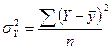 Она характеризует размер отклонений эмпирических значений результативного признака y от теоретических Y, т.е. случайную вариацию. Общая дисперсия