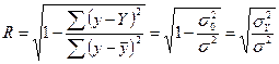 Если же связь криволинейная, то пользуются индексом корреляции, который рассчитывается по формуле: