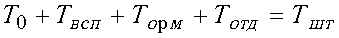 Твсп — вспомогательное время, затраченное на управление станком, установку, закрепление и снятие детали, подвод и отвод режущего инструмента, измерение детали, мин. Торм — время на организацию рабочего места, затраченное на смазывание станка, удаление стружки, уборку рабочего места, установку и снятие режущего инструмента, мин. Тотд — время на отдых, мин.
