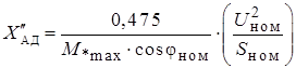 или (для упрощенной формулы) – сверхпереходная реактивность двигателя в именованных единицах на ступени его номинального напряжения (), Ом;