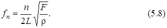Из последнего выражения следует, что стоячие волны на струне могут существовать только на таких частотах