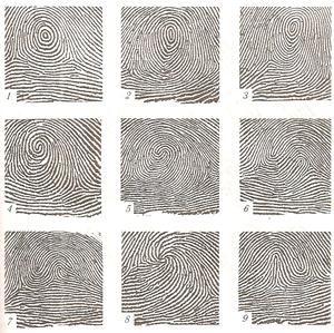 Задание №2. Изучите изображение пальцевого отпечатка, определите строение папиллярного узора, его детали и разметьте их стрелками: