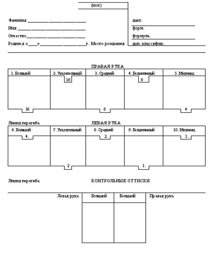 Задание №4. Во время занятия самостоятельно произведите дактилоскопирование по десяти пальцевой системе одного из студентов своей группы.