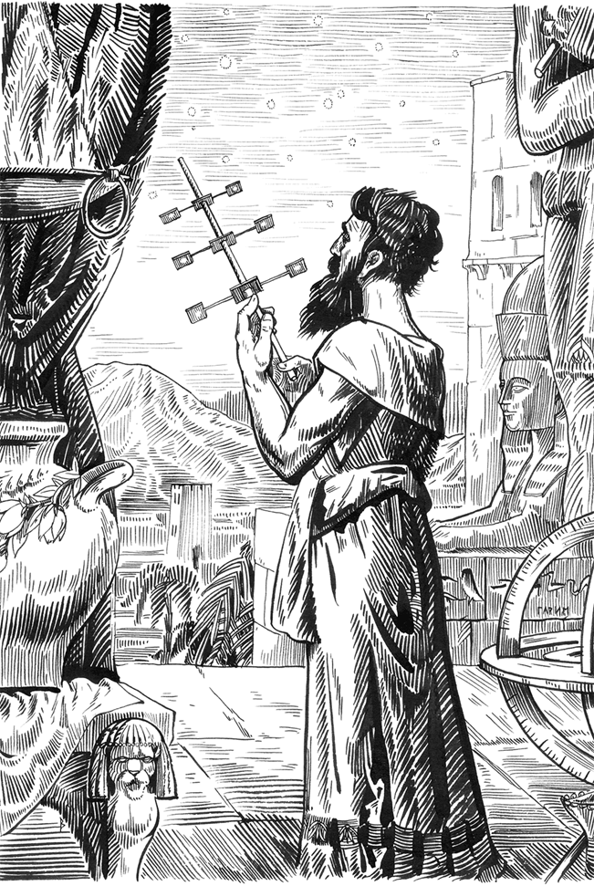 Вавилоняне – жители Вавилонии, древнего царства на юге Междуречья – области между реками Тигр и Евфрат. Первое упоминание о вавилонских городах встречается за две тысячи лет до нашей эры. Царство утрачивает независимость в 539 году до н. э. Столица Вавилон была расположена в 90 км к югу от современного Багдада. Легенда о Вавилонской башне связана с постройкой высоких башен‑зиккуратов, которые служили для астрономических наблюдений и религиозных обрядов. Например, высота башни Этеменанки достигала 91‑го метра. Вавилоняне внесли ценнейший вклад в астрономию, математику и архитектуру. В VI веке до н. э. вавилонский царь Навуходоносор построил висячие сады, позже названные садами Семирамиды, которые были расположены на четырёх ярусах и считались одним из семи чудес света. Лидийцы – жители Лидии, древнего государства в Малой Азии. Существовало в VIII–VI веках до н. э. Мидяне – жители Мидии, древнего государства на западе Ирана. Существовало в 670–550 годах до н. э. Египетские пирамиды – гробницы фараонов Древнего Египта. Единственное сохранившееся из семи чудес света. Пирамида фараона Хеопса, построенная в XXVI веке до н. э., имеет высоту 139 метров. Александрия – греческий город в устье многоводной африканской реки Нил, основана в 332 году до н. э. Александром Македонским, царем и полководцем. Семьсот лет Александрия была крупнейшим центром науки, культуры и торговли. После сожжения Александрийской библиотеки город пришёл в упадок. Сиена (ныне Асуан) – город в Египте. Широта Сиены: 24°04 29 северной широты. В период летнего солнцестояния на широте 23° 27 Солнце достигает зенита. Фалес Милетский (640 или 624 – ок. 545 года до н. э.) – философ и математик из греческого города Милета, сохранившегося до сих пор и расположенного в Малой Азии (ныне, в Турции). Основатель милетской школы, с которой начинается европейская наука. Сочинений Фалеса не сохранилось. Платон (ок. 428 – ок. 348 года до н. э.) – древнегреческий философ, житель Афин. Ученик философа Сократа (ок. 469–399 года до н. э.), учитель философа Аристотеля. Аристотель (384–322 годы до н. э.) – древнегреческий философ. Ученик Платона, учитель полководца Александра Македонского. Аристарх Самосский (310–230 годы до н. э.) – древнегреческий астроном, математик и философ. Жил на греческим острове Самос, расположенном рядом с Милетом. Доказал, что Солнце по размеру гораздо больше Земли, и предложил гелиоцентрическую систему мира, в центре которой находилось Солнце, или, по‑гречески, Гелиос. Эратосфен (276–194 годы до н. э.) – греческий математик, астроном и географ. В 235 году до н. э. стал главой Александрийской библиотеки. Гиппарх (ок. 190 – ок. 120 года до н. э.) – первый астроном‑наблюдатель (в современном понимании этого слова). Гиппарх измерил точное положение 850 звёзд на небе. Через триста лет его результатами воспользовался Птолемей для построения геоцентрической системы. Клавдий Птолемей (ок. 87–165 года) – древнегреческий астроном, математик и оптик. В 127–151 годах жил в Александрии, где проводил астрономические наблюдения. Лунное затмение – заход Луны в тень, отбрасываемую Землей. Жители ночной стороны Земли одновременно видят наступление затмения Луны. Солнечное затмение – загораживание Солнца диском Луны. Наблюдается только в зоне лунной тени, закрывающей небольшую часть поверхности Земли. Движение тени Луны дает возможн