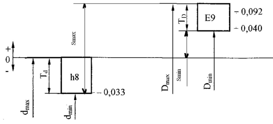 S max = ЕS - еі = 0,092 – (- 0,033) = 0,125 мм; S min = ЕІ - еs = 0,040 - 0 = 0,040 мм.