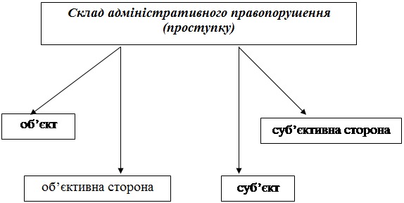 – це сукупність зовнішніх ознак проступку, які визначають акт зовнішньої поведінки правопорушника. Вона дає характеристику суспільної шкідливості проступку, його спрямованості, містить ряд ознак.