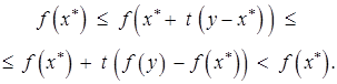 Экстремальные свойства выпуклых функций Данный параграф посвящен изучению экстремумов выпуклых функций на выпуклых множествах. Из теорем, с которыми мы здесь познакомимся, следует, что этот класс задач на экстремум удобен для исследования и решения. Теорема 1. Пусть Доказательство. Пусть