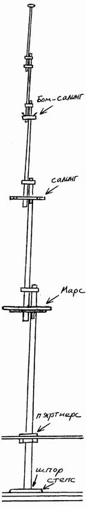 Яков Платонович поднял узловатый палец и торжественно произнес: – А теперь переходим к очень важному вопросу: рассматриваем все части полной корабельной мачты. Если вы их будете знать, легко запомните названия всех парусов и многих снастей такелажа. А то некоторые сухопутные граждане смотрят на схему парусного корабля и пытаются без всякого порядка выучить сотни терминов. Даже не догадываются, что все эти слова строго зависят друг от друга и укладываются в четкую систему… Итак, начали. Полная мачта состоит из пяти составных частей.