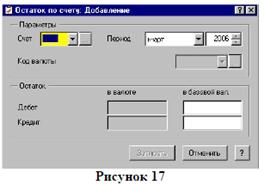 УСТАНОВЛЕННЯ ПЕРІОДУ ПЕРЕГЛЯДКУ 1. Знаходячись в ГЛАВНОМ МЕНЮ програми, виберіть розділ ОСТАТКИ / ОСТАТКИ СРЕДСТВ ПО СЧЕТАМ. На екрані зявиться вікно ОСТАТКИ ПО СЧЕТАМ. 2. Для вибору періоду роботи виберіть пункт контекстного меню «Отобрать» або натисніть клавшу «F6» (наприклад, в полях «с» і «по» – текущий месяц). 3. Для установки текущей даты на панелі інструментів «Настройка» викликати контекстне меню і додати кнопку «Установка текущей даты» (рис. 10). Перед зміною Даты работы всі вікна програми повинні бути закриті. ВВЕДЕННЯ СИНТЕТИЧНИХ ЗАЛИШКІВ ПО РАХУНКАХ 1. Знаходячись в ГЛАВНОМ МЕНЮ програми, виберіть розділ ОСТАТКИ / ОСТАТКИ СРЕДСТВ ПО СЧЕТАМ. На екрані з’явиться вікно ОСТАТКИ ПО СЧЕТАМ. 2. Виберіть пункт контекстного меню «Добавить» або натиснути клавішу «Insert». На екрані зявиться форма ДОБАВЛЕНИЕ (рис. 17).