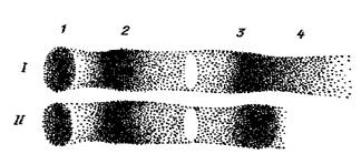 Рис.19. Белковые фракции сыворотки крови рыб; 1-альбумины; 2-альфа; 3-бетта; 4-гамма глобулины