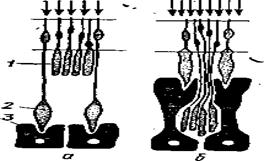 Палочки имеют длинные цилиндрические наружные - сегменты, у колбочек наружные сегменты короткие, каплеобразные. Наружные сегменты зрительных клеток являются их рецепторным аппаратом (рис.85) У костистых рыб имеются колбочки трех видов: одиночные с коротким или длинным миоидом и близнецовые колбочки, для которых характерно тесное прилегание внутренних сегментов. У рыб, амфибий и птиц в колбочках между внутренними и наружными сегментами расположена масляная капля, которая избирательно поглощает свет. Сетчатка позвоночных инвертирована (т. е. как бы: вывернута таким образом, что к наружным сегментам фоторецепторов свет доходит в последнюю очередь). В эпифизе также имеется сетчатка с фоторецепторнымш клетками, но она не инвертирована. У светолюбивых рыб (окунь, форель, щука) светочувствительные элементы многочисленны с небольшим преобладанием палочек, над колбочками. У этих рыб каждая фоторецепторная клетка контактирует с одной биполярной клеткой, а четыре биполярные клетки - с одной ганглиозной, что обеспечивает высокую остроту зрения при сравнительно низкой световой чувствительности. У рыб, избегающих яркого света (лещ, ерш, угорь, налим), в сетчатке в значительной степени преобладают палочки. У них с каждой биполярной клеткой связано до десяти и более фоторецепторных, а соответственно на одну ганглиозную клетку приходятся десятки и даже сотни фоторецепторных клеток. Это приводит к уменьшению остроты зрения, но увеличивается световая чувствительность. У некоторых видов морских глубоководных рыб колбочки вообще отсутствуют. Палочки пресноводных рыб содержат пурпурный зрительньй пигмент- порфиропаин (максимум поглощения света приходится на 520—1540 нм), палочки морских рыб—родопсин (максимум поглощения света 1500 нм) и смесь родопсина с порфиропаином (максимум поглощения света 500—640 нм). Колбочки рыб содержат фиолетовый пигмент йодопсин (максимум поглощения света 682 нм) и голубой пигмент цианолсин (650 нм). Если рыбы из морской воды перемещаются в пресную, то родопсин у них меняется на порфиропсин. Между палочками и колбочками имеются реципромные -взаимосогласованость отношения, т. е. когда функционируют палочка, то функция колбочки заторможены, и наоборот. У морских рыб светочувствительность сдвинута в коротковолновую часть спектра, а у пресноводных - в длинноволновую. В сумерки рыбы воспринимают коротковолновую, часть спектра, днем - длинноволновую. Виды, живущие в поверхностных слоях (керчак, морской налим), воспринимают более широкий спектр лучей света (400-760 нм), чем донные рыбы (скаты), воспринимающие более узкий спектр луча света (410-640 нм). В воде с увеличением глубины усиливается поглощение красных и ультрафиолетовых, лучей, на глубине преобладают синие лучи, соответственно суживается воспринимаемый спектр луча света. Позади зрачка располагается хрусталик. Показатель преломления зрачка у рыб равен 1,649-1,653. Показатели преломления роговицы и стекловидного тела приблизительно такие же, как у Основную преломляющую функцию у рыб выполняет хрусталик, обладающая способностью к адаптации - аккомодаций Аккомодация - способность четкого видения предметов, находящихся на разных расстояниях от глаза, у млекопитающих осуществляется за счет изменения кривизны хрусталика. У рыб имеется галлеров орган (специальные мышцы), за сч