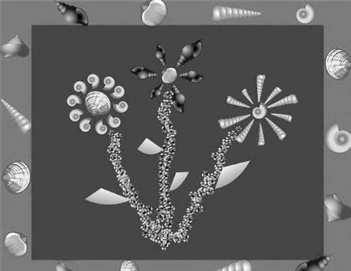 Инструменты и материалы: ракушки, цветной картон, клей, кисточка. Нанесите схематичный рисунок будущей аппликации на лист. Старайтесь, чтобы карандаш оставлял едва заметный след. Подберите подходящую ракушку для сердцевины цветка. Приклейте ее на место сердцевины. Затем по кругу приклейте другие ракушки, словно листочки. Из битых речных ракушек сделайте стебель. Для этого молотком разбейте их как можно мельче. Намажьте клеем стебель и посыпьте мелкими кусочками ракушек (рис. 11). Подождите несколько минут и стряхните, чтобы освободиться от неприклеившихся кусочков. Так же сделайте и остальные цветы.