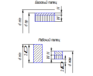2.1.1 Определяется номинальный диаметр рабочего пальца dпр dпр - диаметр изношенного проходного калибра, принимается по справочнику на исполнительные размеры калибров, этот диаметр фактически является номинальным для базового пальца и составляет 8,952 мм