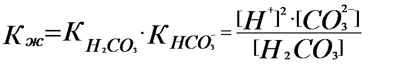 Бізге қажетті мән [CO32-] болғандықтан [HCO3-] пен [H2CO3 мәндерін көмірқышқылының әр бөлшекке сәйкес ионизациялану константасымен өрнектеу керек: