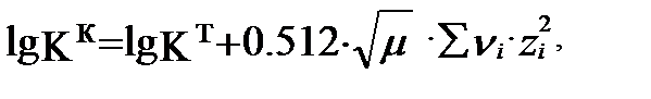 А- еріткіштің диэлектрикалық тұрақтылығы (D) мен абсолюттік температурадаға (Т) байланысты мән. 250С –да сұйытылған судағы ерітінді үшін А=0,512. В а – диэлектрикалық тұрақтылық және абсолюттік температурамен қатар бөлшектердің мөлшеріне байланысты. Ерітіндінің иондық күшіне (концентрациясына) қарай бұл байланыс әртүрлі теңдіктермен белгіленеді:
