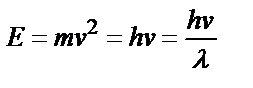Кез келген басқа ортада Ci=C/ n болады, бұндағы n – сыну коэффициенті. Қанықтық Энергия қуаты P – белгілі бір беттік қабатқа түсетін сәулеленудің 1секунд ішіндегі энергиясы. Оның орнына көбінесе «қанықтықты» қолданады. Поляризациялану беті – бұл электрлік аудан тербелетін ХУ кеңістігі. Егер жарық шоғы бірнеше кеңістіктен тұратын болса, оны поляризацияланбаған дейді. Ал егер жарық шоғының барлық электрлік ауданы бір ғана тегіс кеңістікте орналасса, онда оны тегіс поляризацияланған деп атайды. Толқын ұзындығы, толқын жиілігі және сәулелену жылдамдығы арасындағы байланыс мына қатынас арқылы көрсетіледі: Электромагниттік сәулеленудің корпускулалық қасиеті Сәулелену дискретті бөлшектер шоғынан тұрады (жарық кванты немесе фотон). Фотон жарық жылдамдығы бойынша қозғалады. Ол – материальды бөлшек, өзінің массасы және импульсы болады. Ол өзінің түзу сызықты жолынан ауырлық күшінің әсерінен ауытқиды, бірақ оның басқа материалды денелерден айырмашылығы, ол жарық жылдамдығымен ғана қозғалады. Әрбір фотонның энергиясы болады, ол Кез келген дененің массасы, жылдамдығы және толқын узындығы арасында фотондағы сияқты, байланыс болады: