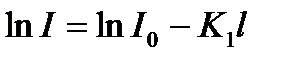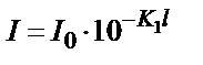 е – натурал логарифмнің негізі; К1 – жұтылу коэффициенті; l – жарық жұтатын қабаттың қалыңдығы; I/ I0 – қатынасын өткізгіштік деп атайды да Т деп белгілейді. (1) – теңдіктің логарифмді түрін жазсақ: Бұндағы, Kn – пропорционалдық коэффициенті; С – анықталатын заттың концентрациясы. Боялған ерітіндінің бойынан өткен монохроматты жарық шоғының интенсивтігі (I), түскен жарық шоғының интенсивтігі (I0), боялған қосылыстың концентрациясы (С) және ерітіндінің қалыңды (l) арасындағы байланысты жалпы Бугер-Ламберт-Бер заңымен өрнектейді: