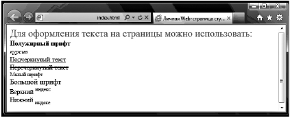 Рис. 3.12. Оформление шрифтов на web-странице