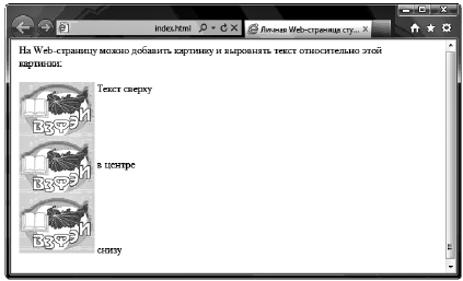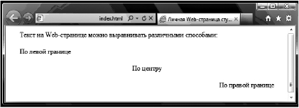 Рис. 3.14. Выравнивание текста: окно браузера