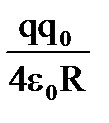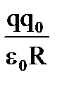 $$$ 941 Нүктелiк заряд q электрстатикалық өрiс туғызады. Центрінде сол q, ал радиусы R шеңбер бойымен q0 заряд орын ауыстырғанда орындалатын өріс күшінің жұмысы неге тең болады?