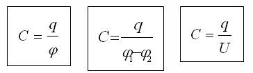 Мұндағы W - зарядталған конденсатор энергиясы, q - конденсатор астарларының заряды, C - конденсатордың сыйымдылығы, U - конденсатор астарларының ұштарындағы кернеу.