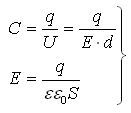 Мұндағы С - жазық конденсатордың сыйымдылығы, ε - диэлектрлік өтімділік, ε0 - электр тұрақтысы, S – конденсатор астарларының ауданы, d – диэлектриктің қалыңдығы. Жазық конденсатордың сыйымдылығы конденсатор астарларының ауданына, диэлектрлік өтімділігіне тура пропорционал және диэлектриктің қалыңдығына кері пропорционал. Зарядталған конденсатор энергиясы W [Дж] – ол зарядталған конденсатор астарларының арасындағы электр өрісінің энергиясы.