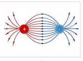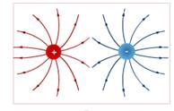 25. Как направлены силовые линии электрического поля, создаваемого положительным и отрицательным зарядами?