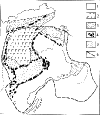 В раннем триасе начинают формироваться совершенно другие образования, связанные с активностью многочисленных эксплозивных вулканов, приуроченных к системам разломов и поставляющих огромные массы базальтовых туфов, пеплов и туфобрекчий до 1 км (рис. 22.4). В дальнейшем эксплозивные извержения сменились эффузивными, продукты которых - потоки недифференцированных базальтов, мощностью от 1-2 до 15-20м, сформировали в центральных и северных частях Тунгусской синеклизы толщу до 3 км. Базальты были жидкими и растекались из трещин на большие расстояния. Пирокластические и эффузивные продукты относятся к траппам - низкокалиевым базальтам и андезито-базальтам. Характернейшим элементом трапповой формации являются силлы, располагающиеся полосами вдоль краевых частей Тунгусской синеклизы, где имели место глубокие разломы земной коры и зоны наибольшего растяжения. Силлы сильнее всего "насыщают" пермские и триасовые отложения и при выветривании образуют ступенчатый - "лестничный" рельеф (слово "трапп" на шведском языке и означает "лестница"). Иногда мощность силлов достигает первых сотен метров, но чаще - первых десятков. Кроме силлов развиты дайки, штоки, лакколиты. На западном склоне Анабарского массива в это же время происходили излияния и внедрения щелочных базальтов и ультраосновных щелочных пород. Таким образом, мощная магматическая деятельность начала мезозойской эры, давшая более 1 млн. км материала, проходила как бы в три этапа: 1) эксплозивные извержения; 2) излияния базальтовых лав; 3) внедрение пластовых интрузивов - силлов. В позднем палеозое и раннем мезозое в пределах Сибирской платформы формировались трубки взрыва, сложенные эффузивными брекчиями - кимберлитами, в которых содержатся алмазы. Эти брекчии представляют собой результат глубинных взрывов ультраосновных щелочных магм. Трубки взрыва в плане обладают округлой или изометричной формой диаметром около 100 м, воронкообразным сечением и вертикальной ориентировкой. Первая алмазоносная трубка взрыва "Зарница" была открыта в 1954 г. В настоящее время известно более 200 трубок взрыва. Установлено три главные эпохи их образования: раннекаменноугольная, средне-позднетриасовая, раннемеловая. К позднему триасу в современных контурах сформировалась Тунгусская синеклиза. Опускания происходили и на крайнем северо-востоке платформы в Лено-Анабарском прогибе, где известны морские терригенные отложения триаса до 1 км мощностью. На рубеже триасового и юрского периодов на Сибирской платформе произошло новое резкое изменение структурного плана, выразившееся в перераспределении областей поднятий и прогибаний. Море трансгрессировало с севера, поэтому в Лено-Анабарском прогибе развит наиболее полный разрез морской терригенной юры до 1 км, а южнее морские отложения начинают чередоваться с континентальными. Максимальным проникновение моря к югу было в конце ранней юры, когда оно достигло восточных районов плоского субширотного Ангаро-Вилюйского прогиба. В дальнейшем морской бассейн регрессировал, поэтому в разрезах чередуются морские, прибрежные и континентальные песчано-глинистые отложения. Верхнеюрские отложения на большей части территории представлены континентальными угленосными песчаными толщами до 1 км в центре Вилюйской синеклизы, образующими огромный Ленский углен