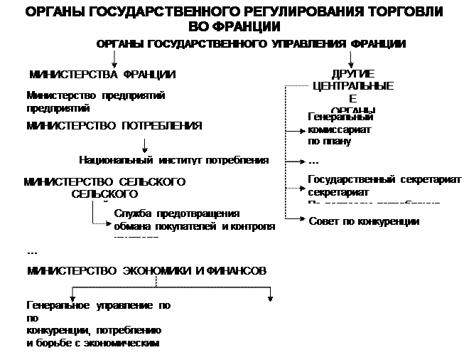 Государственное воздействие на развитие торговли во Франции осуществляет ряд министерств и органов, такие как Министерство потребления, Министерство сельского хозяйства и др. (схема 2).