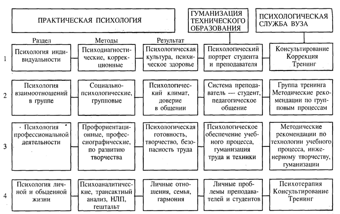 Рис. 1. Структура практической психологии и взаимосвязь с гуманизацией и психологической службой вуза
