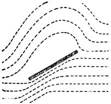 Если при угле атаки в 90° центр давления находится в середине поверхности, то при уменьшении угла атаки он приближается к ребру атаки. Центр давления находится в первой четверти, считая от ребра атаки, при угле атаки, равном нулю (рис. 47 и 48). Сопротивление воздуха в случае наклонной поверхности перпендикулярно к ее плоскости и направлено в сторону, обратную ее перемещению.