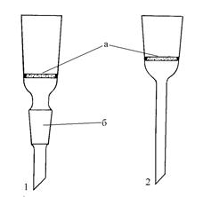 Стеклянные фильтры (или фильтры Шотта) (рис.1) представляют собой стеклянные воронки с вплавленными в них пластинами из спрессованного пористого стекла.