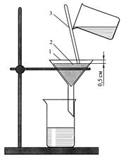 Приготовленный фильтр вкладывают в воронку и, прижимая к её стенкам, смачивают небольшим количеством воды. Если целью фильтрования является получение жидкости, а также при необходимости увеличить скорость фильтрования применяют складчатый фильтр. Его изготавливают так же, как и гладкий фильтр, но при этом полукруг складывают по пунктирам поочерёдно в противоположные стороны с образованием «гармошки» (рис.4). Её расправляют и вставляют в воронку, не смачивая водой.