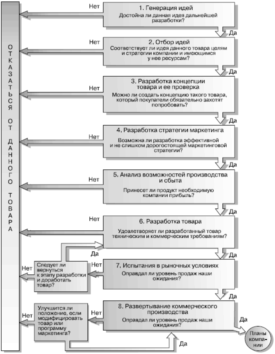 Отбор идей Второй этап – отбор идей и отказ от неудачных предложений. Цель отбора идей – как можно более ранний отсев неудачных предложений, так как на каждом следующем этапе процесса затраты на разработку товара возрастают. Большинство компаний требует стандартного оформления предложений, что упрощает процесс их рассмотрения и оценки комитетом по новым товарам. Заявка должна содержать идею товара, анализ целевого рынка и конкурентов, а также приблизительную оценку объема рынка, цену товара, необходимых материальных ресурсов и трудозатрат, производственных расходов и рентабельности. Комитет проверяет каждую идею по целому ряду критериев. Например, удовлетворяет ли товар покупательскую потребность? Обеспечивает ли он ценность – достигается ли сочетание высокого качества с доступной ценой? Приведет ли рекламная кампания к тому, что покупатели будут выделять новый товар из общей массы товаров? Обладает ли компания необходимыми ноу‑хау и денежными средствами? Обеспечит ли новый продукт требуемые объем продаж, темп роста и прибыль? Наконец, компания оценивает общую вероятность успеха нового товара; если вероятность достаточно велика, то наступает следующий этап разработки.