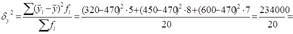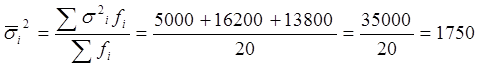 где Средняя из внутригрупповых дисперсий. Вначале рассчитываем дисперсии по каждой группе: