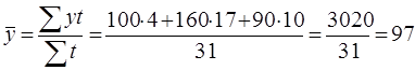 1. Определим коэффициент пересчета уровней для 1999г., с этой целью сопоставим уровень производства этого года в старых и новых границах региона: Получен ряд динамики с сопоставимыми уровнями объема продукции промышленности (в фактически действовавших ценах) в регионе (в новых границах): Годы 1996 1997 1998 1999 2000 2001 2002 Сомкнутый ряд объема произ- водства продукции, млн.грн. 32,2 33,8 34,5 36,2 37,4 38,3 40,0 2. Применяя другой способ смыкания, принимаем за 100% уровни 1999г. как для последующих, так и для предыдущих лет. Остальные уровни пересчитываются в % по отношению к этим уровням соответственно (до изменений – по отношению к 31,5, а после изменений – по отношению к 36,2). В результате получается сомкнутый ряд: Годы 1996 1997 1998 1999 2000 2001 2002 Сомкнутый ряд объема про изводства продукции в новых 88,9 93,3 95,2 100,0 103,3 105,8 110,5 границах региона, млн.грн.