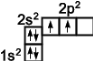 Як видно, на зовнішній оболонці є два неспарених електрони, отже Карбон повинен бути двохвалентним. Однак, у переважній більшості випадків Карбон в органічних сполуках чотирьохвалентний. Це пов'язано з тим, що при утворенні ковалентного зв'язку атом Карбону переходить у збуджений стан, при якому електронна пара на 2s-орбіталі роз'єднується й один електрон займає вакантну p-орбіталь. Схематично: