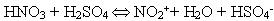 Реакція відбувається за механізмом електрофільного заміщення. Роль електрофільної частинки відіграє іон NO2+, який утворюється в результаті реакції: