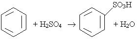 2. Сульфування. Водень в бензольному ядрі може бути заміщений на сульфогрупу SO3H під дією концентрованої сірчаної кислоти; цей процес називається сульфуванням: