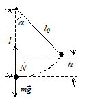 где h=l - l0 cosa. Из (1) и (2) получаем Натяжение нити при прохождении положения равновесия равно