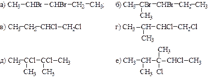 43. Які вуглеводні утворюються при дії КОН в спирті, а також при дії цинкового пилу на такі галогенпохідні: