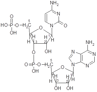 Полинукклеотиды – это полимеры, составленные из нескольких мононуклеотидов, связанные 3’,5’-фосфодиэфирными связями. Составим динуклеотид, состоящий из цитидиловой и адениловой кислот.