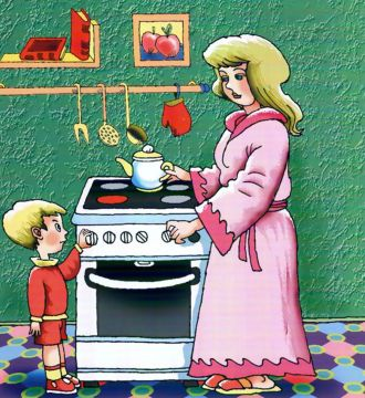Спички и зажигалки детям не игрушка. Из маленькой спички может получиться большой пожар. Плита для взрослых лишь нужна, на ней готовит мама кушать. А малышам трогать плиту нельзя, чтоб не случилась вдруг беда. Дорогу переходим по пешеходному переходу аккуратно, не спешим и не бежим. Вначале надо посмотреть налево, если машин нет, то можно идти до середины дороги. На середине посмотри направо, если не едут машины, то переходи дорогу.