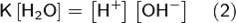 где: · [H+] — концентрация ионов гидроксония (протонов); · [OH−] — концентрация гидроксид-ионов; · [H2O] — концентрация воды (в молекулярной форме) в воде; Концентрация воды в воде, учитывая её малую степень диссоциации, величина практически постоянная и составляет (1000 г/л)/(18 г/моль) = 55,56 моль/л. При 25 °C константа диссоциации воды равна 1,8·10−16моль/л. Уравнение (1) можно переписать как: